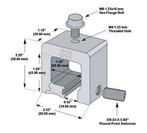The S-5-Q Mini is a bit shorter than the S-5-Q and has one setscrew rather than two. The Mini is the choice for attaching all kinds of rooftop accessories: signs, walkways, satellite dishes, antennas, rooftop lighting, lightning protection systems, solar arrays, exhaust stack bracing, conduit, condensate lines, mechanical equipment—just about anything